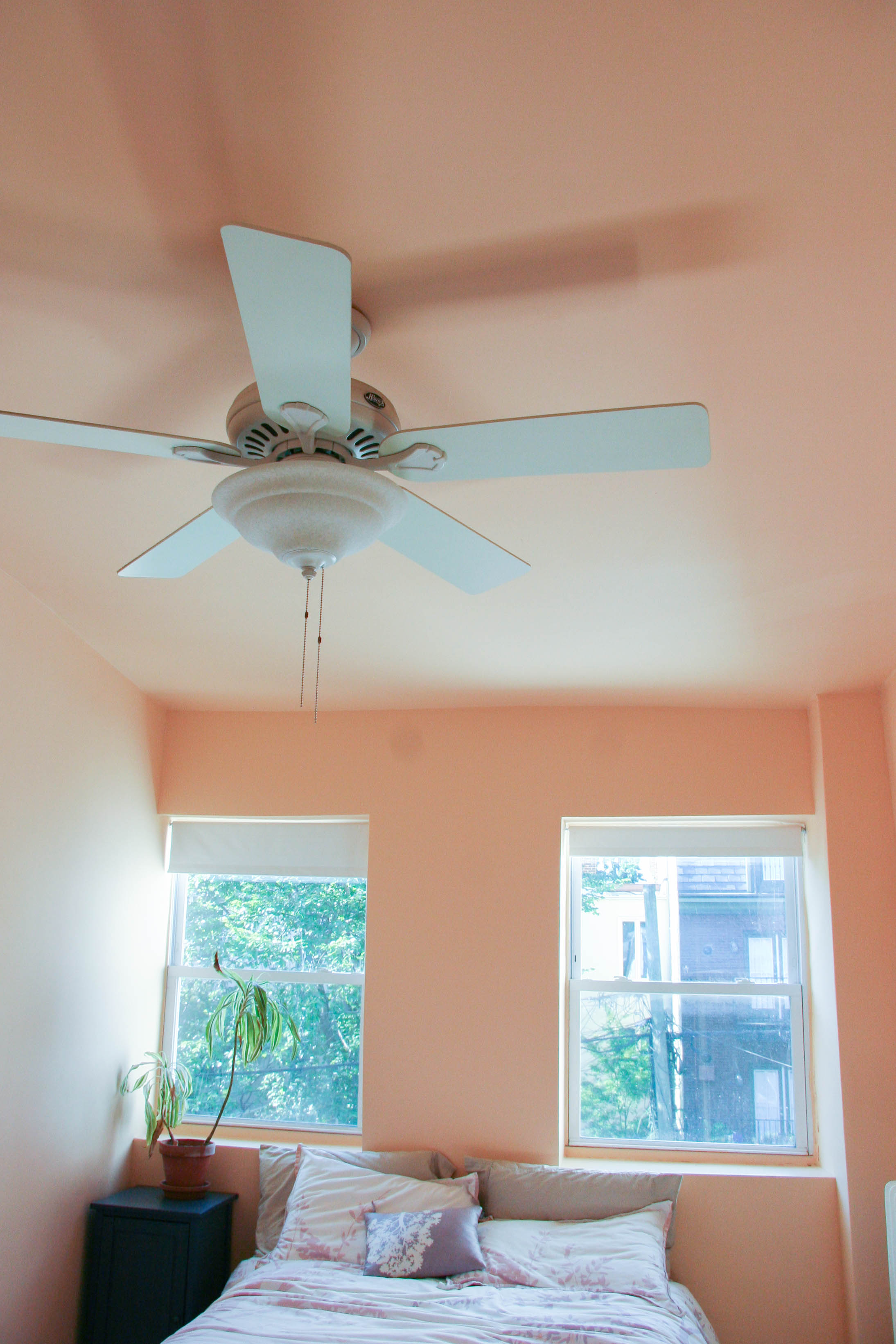 A less drastic makeover occurred in the guest room. We just painted the ceiling, since the original wall color coincidentally works with our furniture.