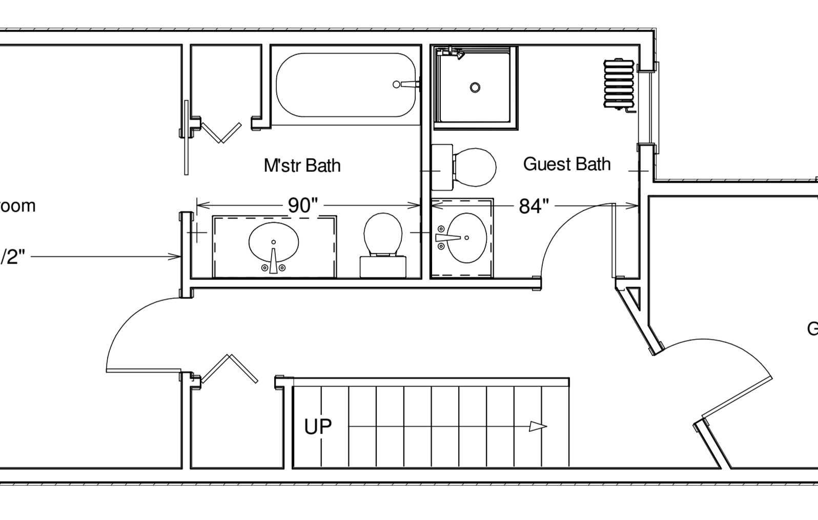 Now the plan is to redo the hallway bath, make it a bit smaller, and steal some of that square footage for a new en suite! We’ll also be making our spacious master bedroom a bit tighter in the process.