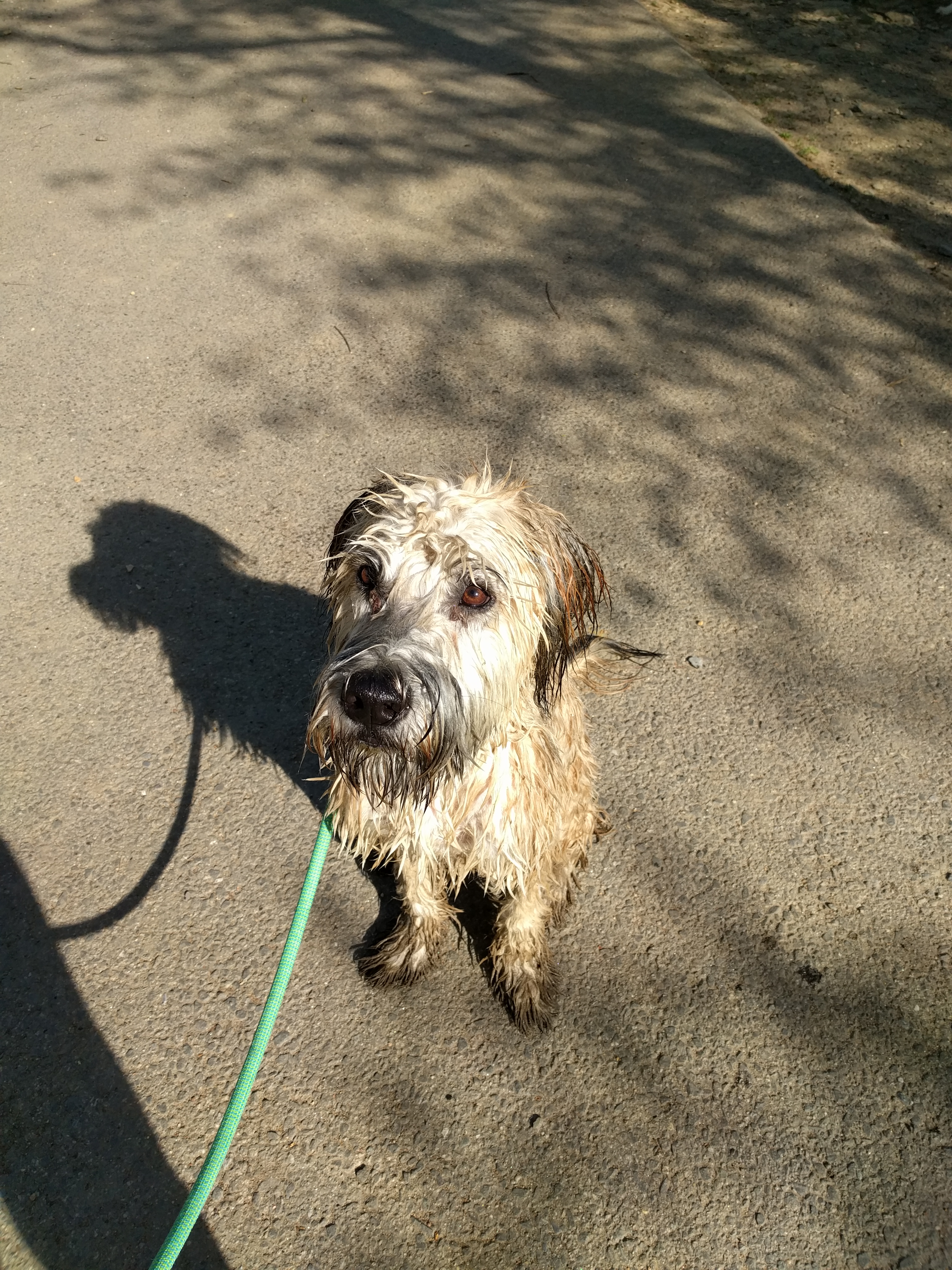 We recently took Thambi to a dog park that has a little creek. It was his first time near “wild water”, i.e. not bath water. And he ran and jumped right into it! A true natural. Here he is, soaked and muddy, with a happy twinkle in his eye: