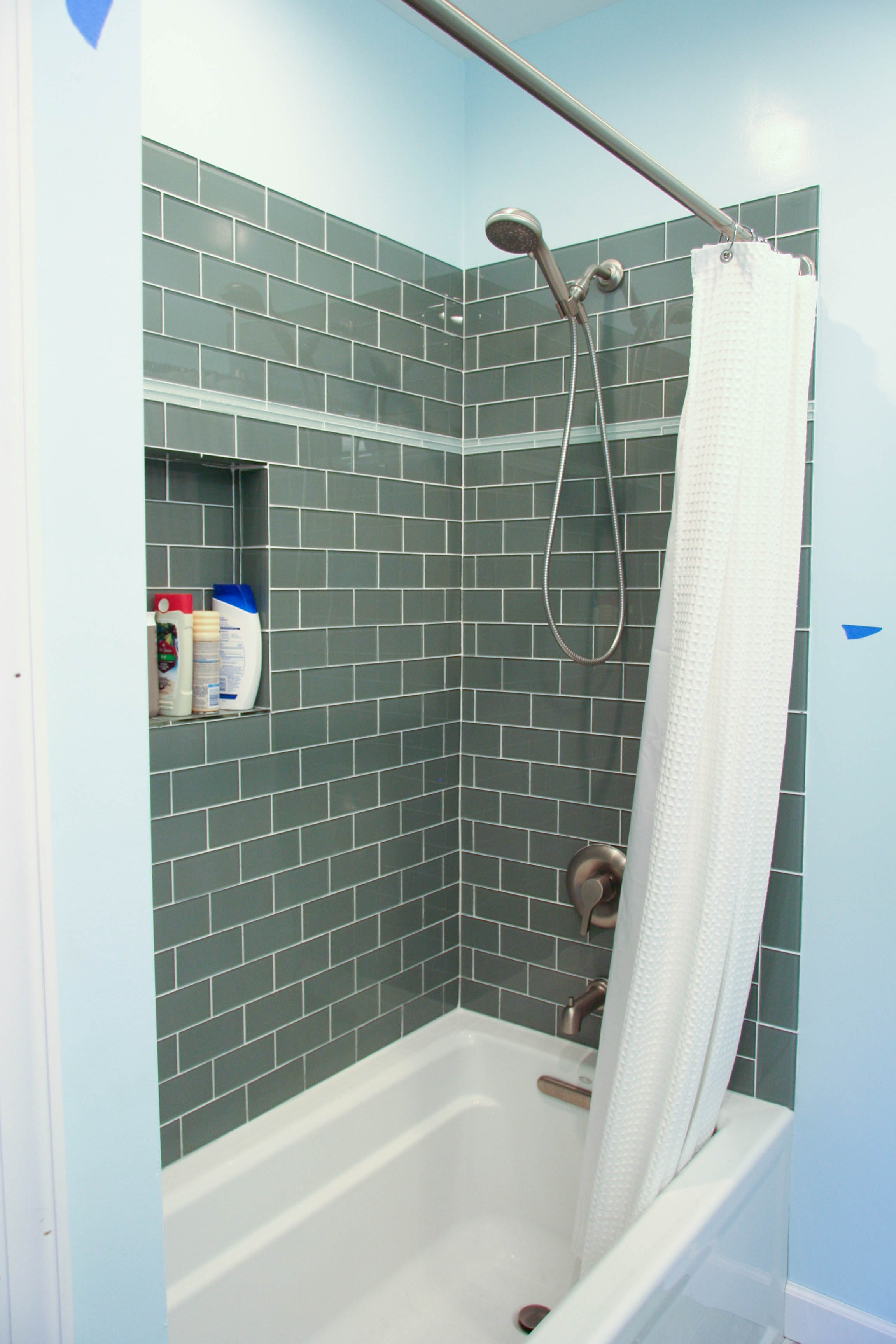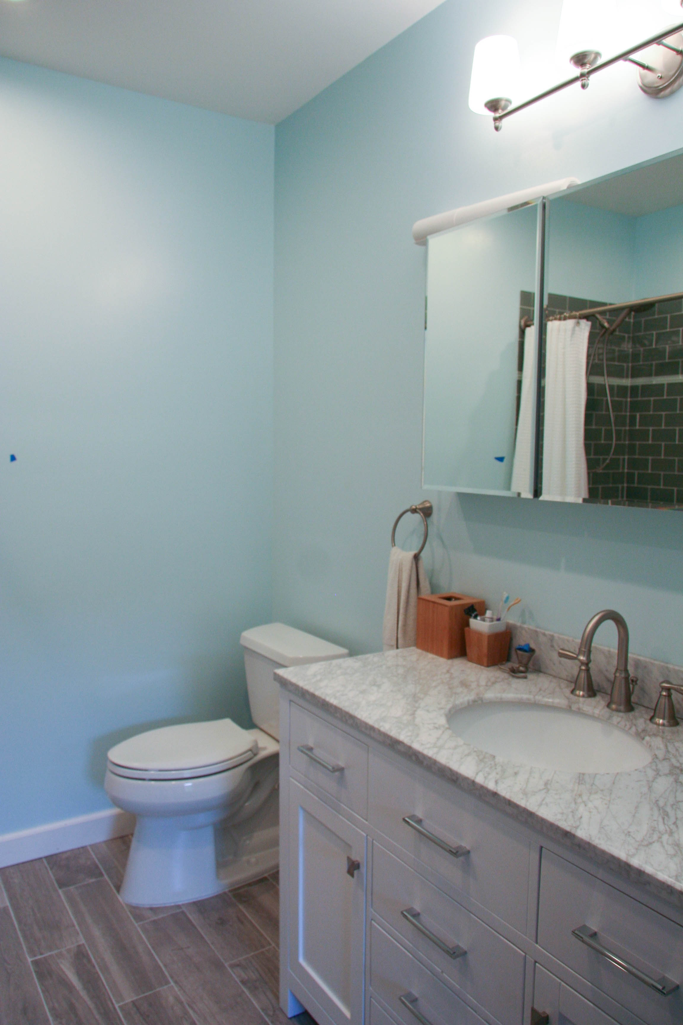Finally we have an ensuite! It is fully functional (which is why we were able to move back in). The paint color is a calming, but cheery, blue - Sherwin Williams Bravo Blue.