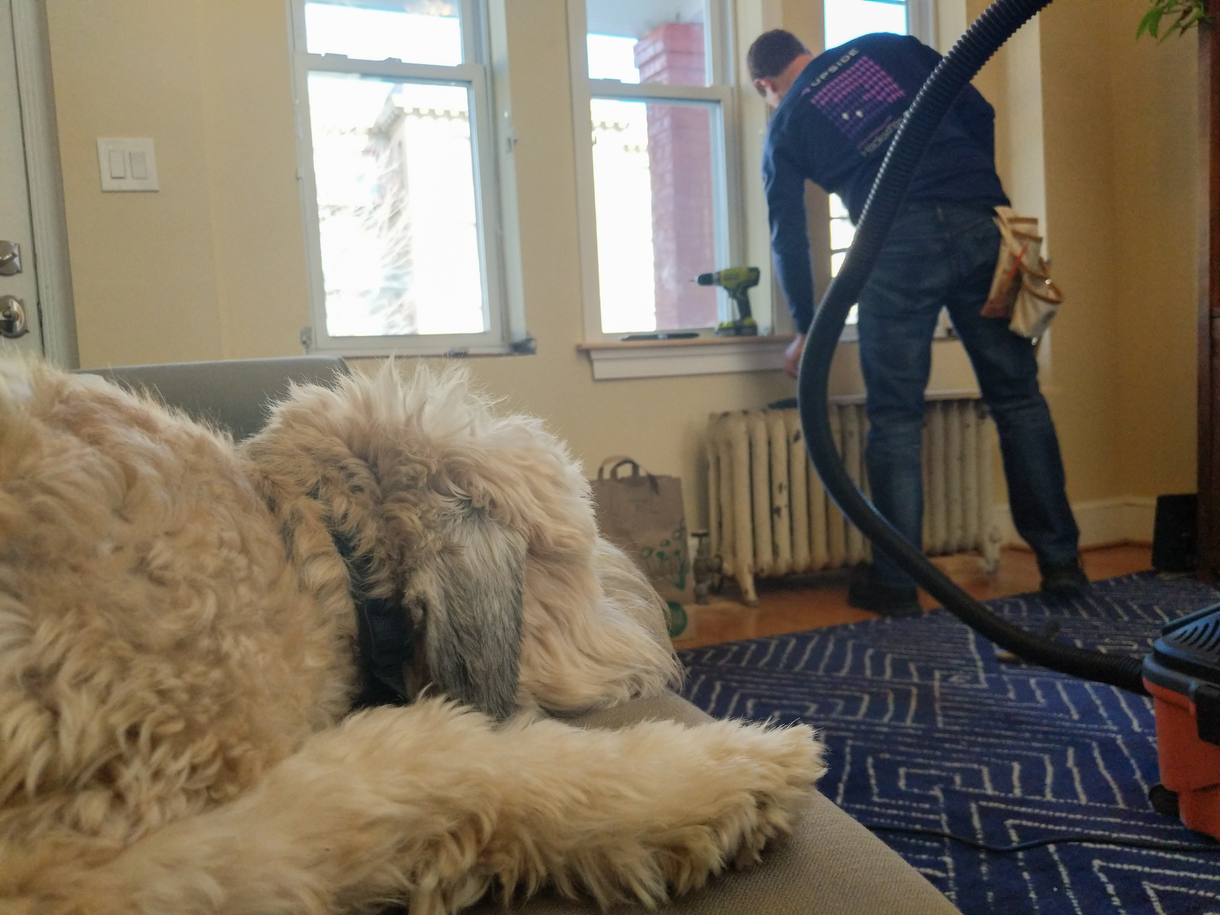 You might also notice that a certain fluffy dog has done quite a bit of damage to the drywall, due to his bad habit of barking madly at passer-bys. He’s only 35 pounds!