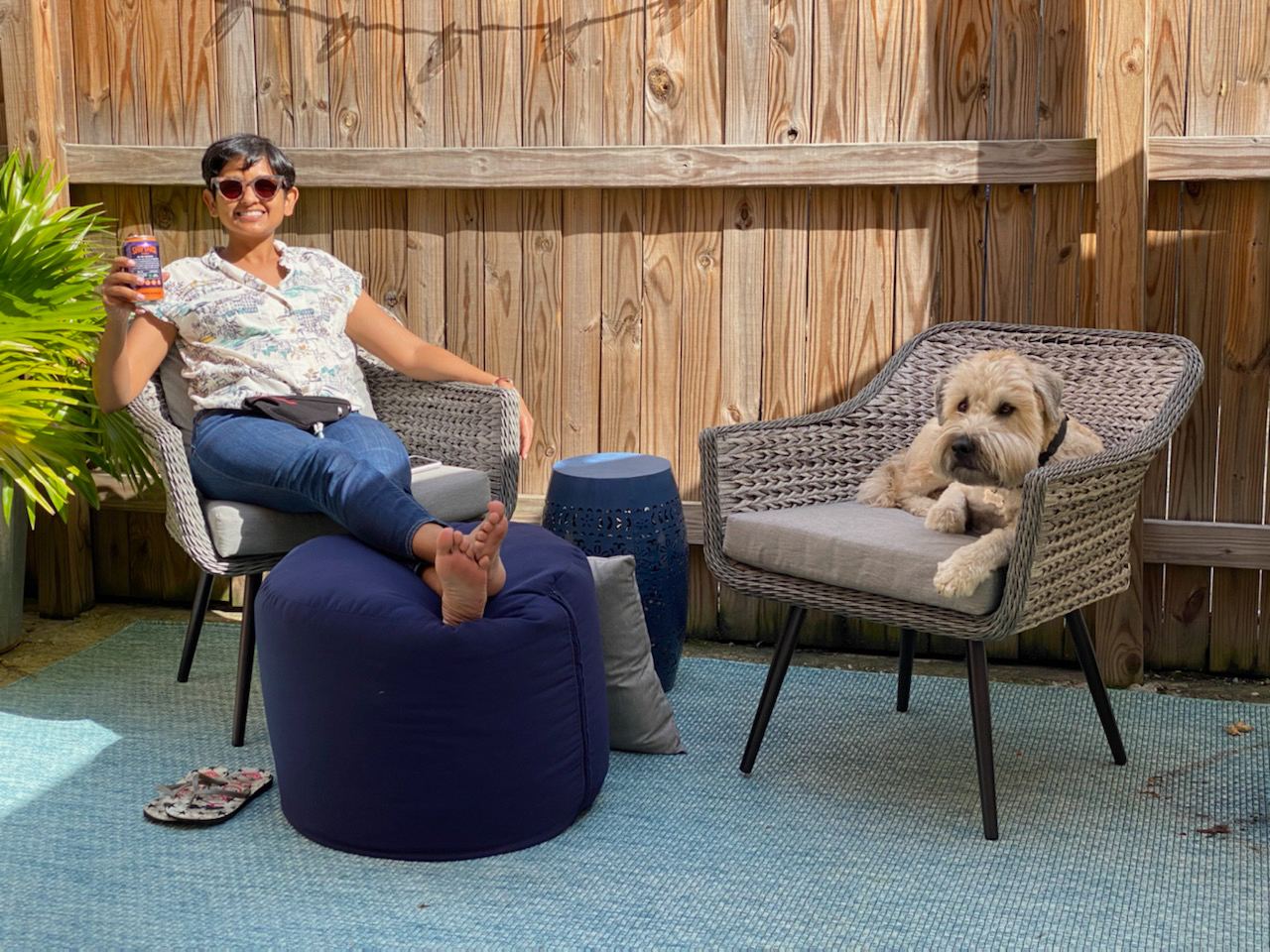A couple of weeks ago, we enjoyed the early Fall weather. We’re lucky that this patio is on the South side of the house so it stays pretty warm, even if there is a little bit of a chill in the air. Here’s Thambi comfortably enjoying the weather in one of the lounge chairs while I enjoy a pumpkin beer. Cheers!