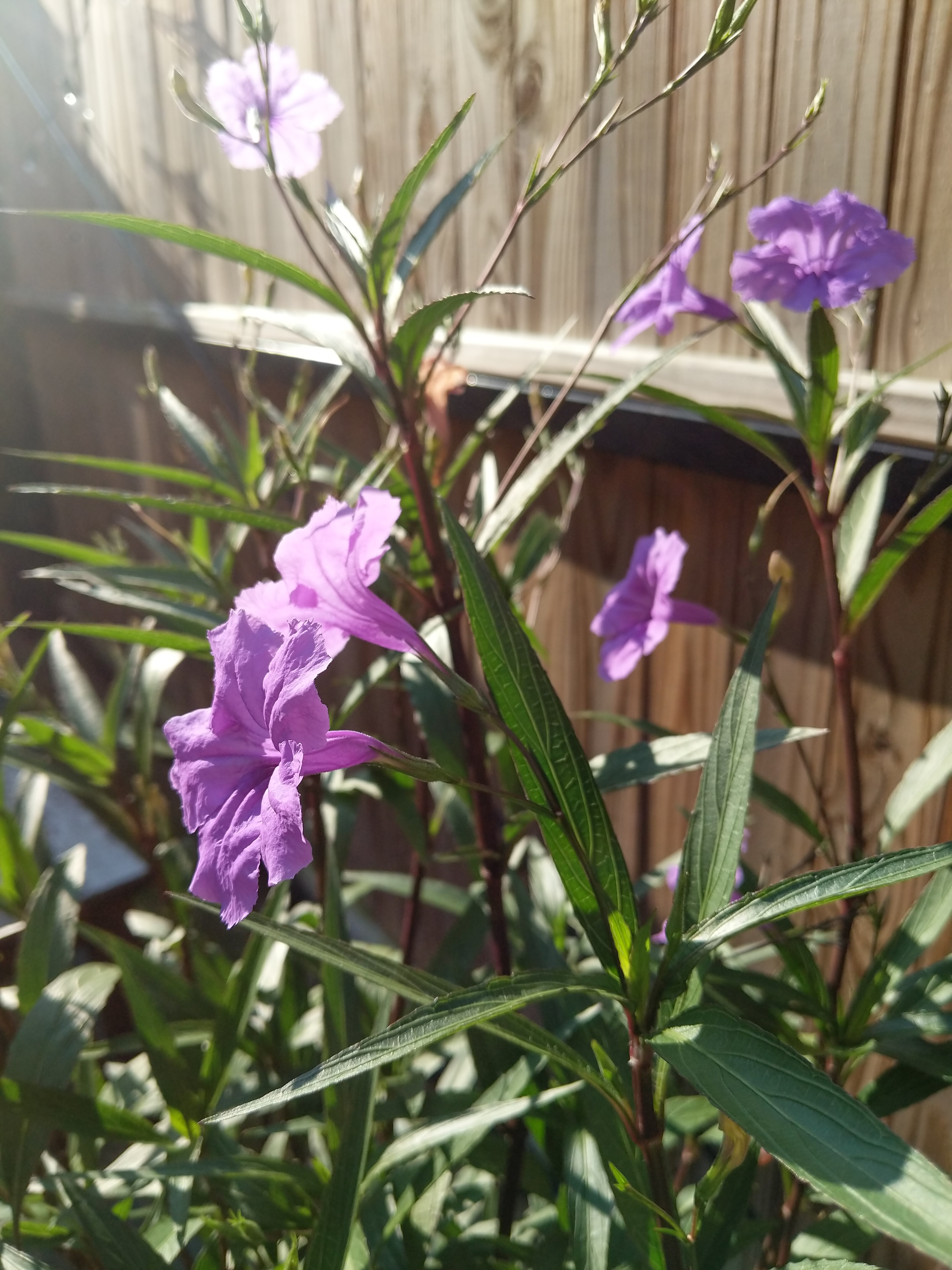 You can also see a couple extra plants. These Mexican Petunias are lovely - these thrive in full sun and they bloomed every morning with lots of purple flowers: