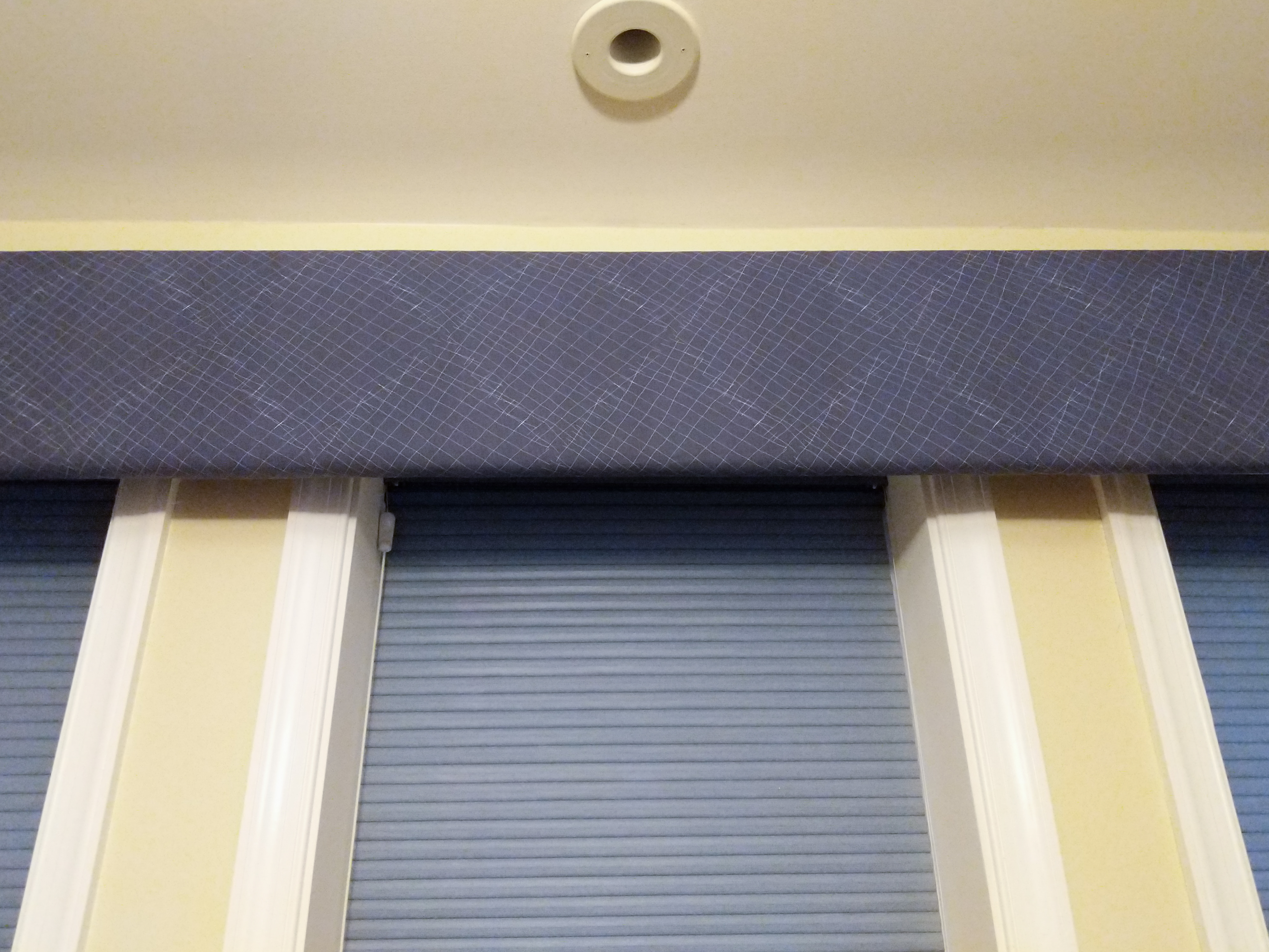 I didn’t bother to get out my SLR but you can see the finished product in the photos below! I think it came out pretty well and it was actually pretty easy! It also sits pretty tightly against the wall and the modification for dealing with the box worked out quite well! We’ll make valances for the master bedroom next!