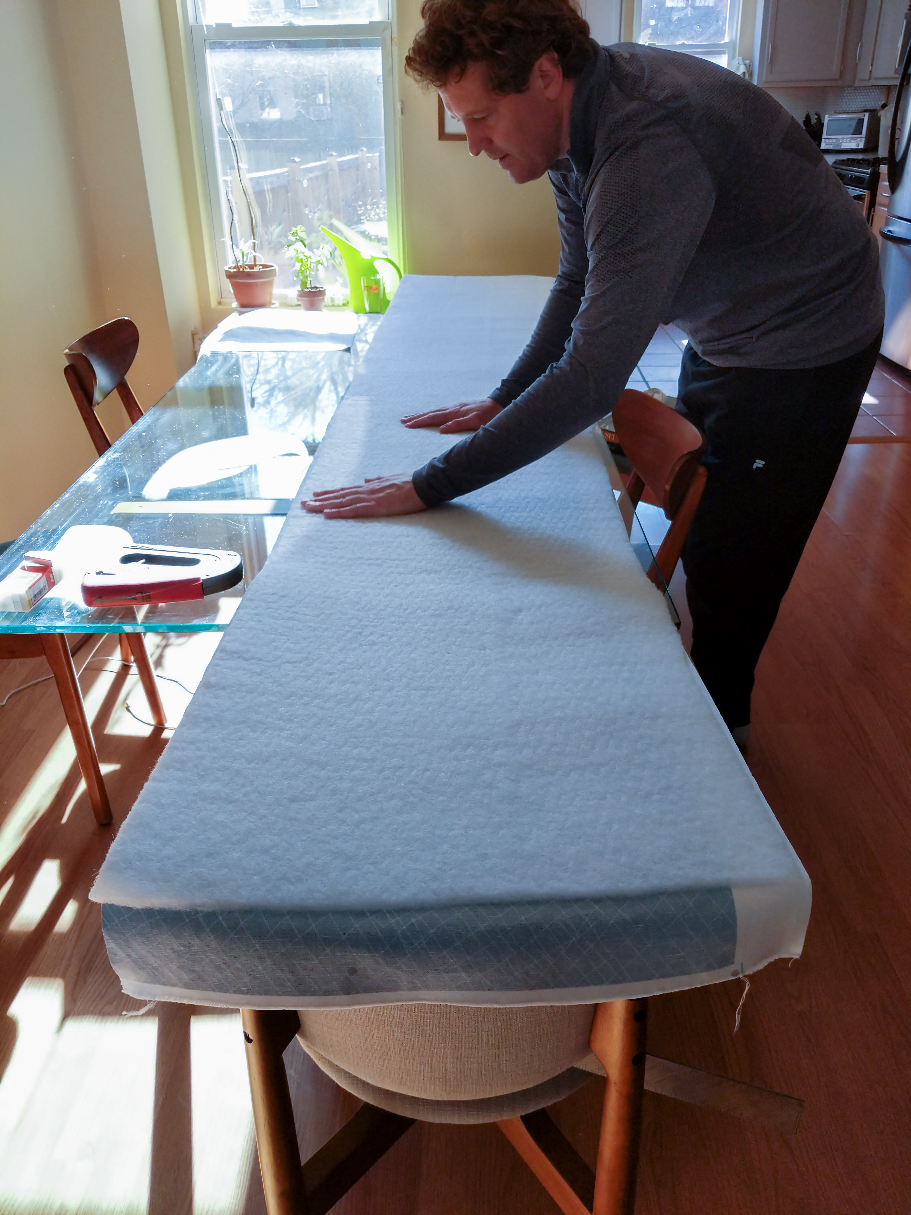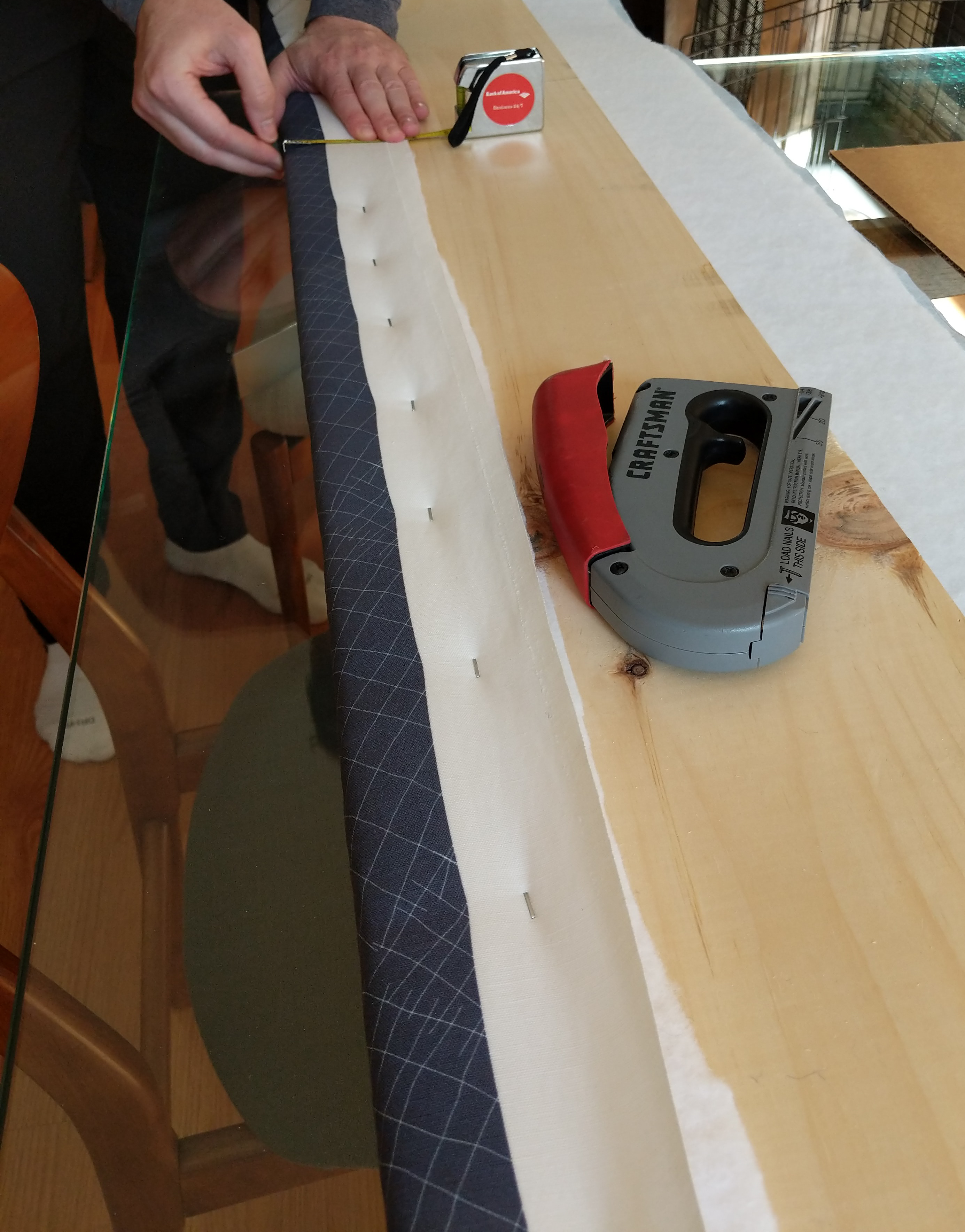 Next step, a lot of pulling the fabric and batting to get it taut, and stapling!