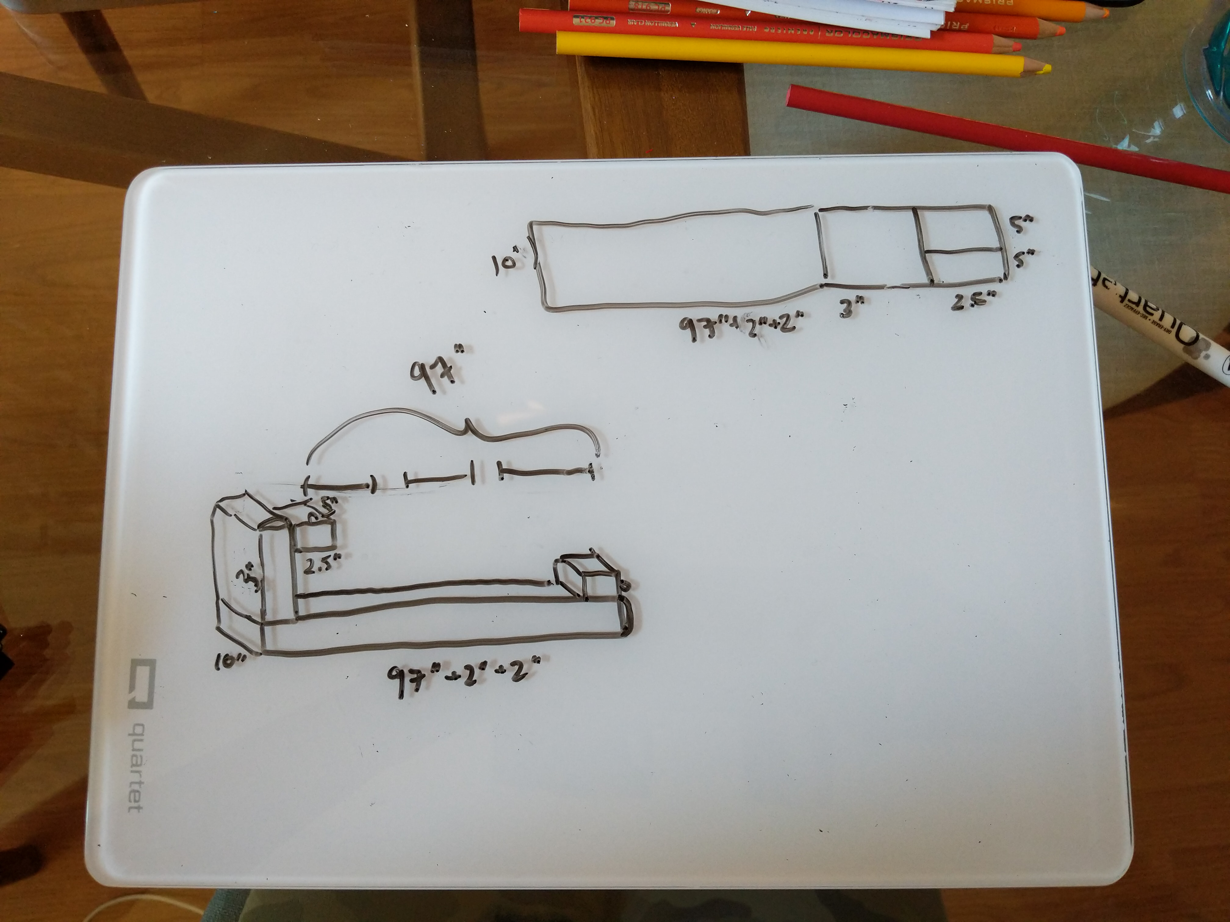 We had a slight issue in matching the design from the post because there is a box in the right corner that hides some duct work. I sketched out a modified design using this cute little personal whiteboard I recently purchased from Quartet: