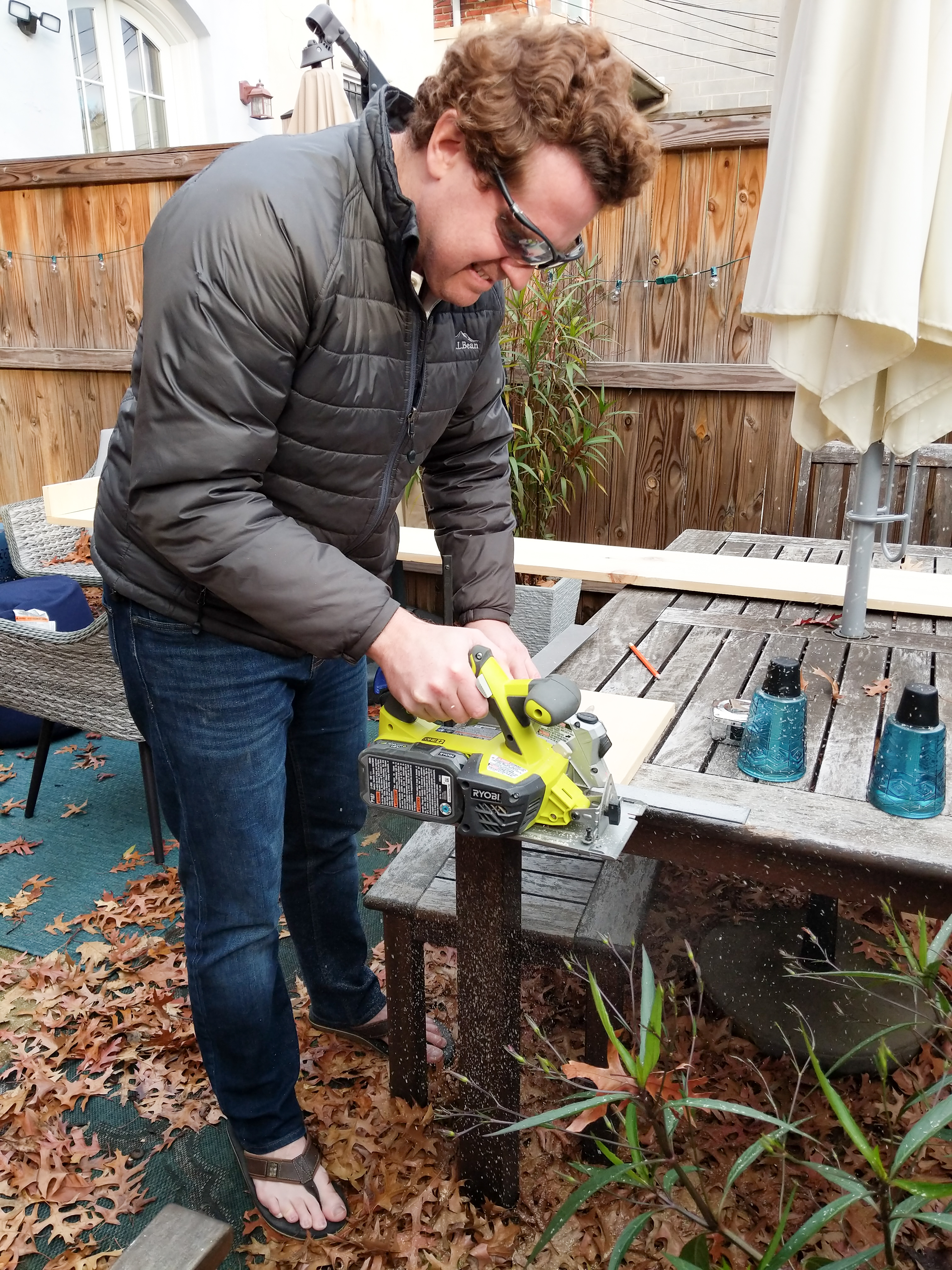 Mike made all the cuts to the wood we bought from Home Depot and we nailed the wood structure together.