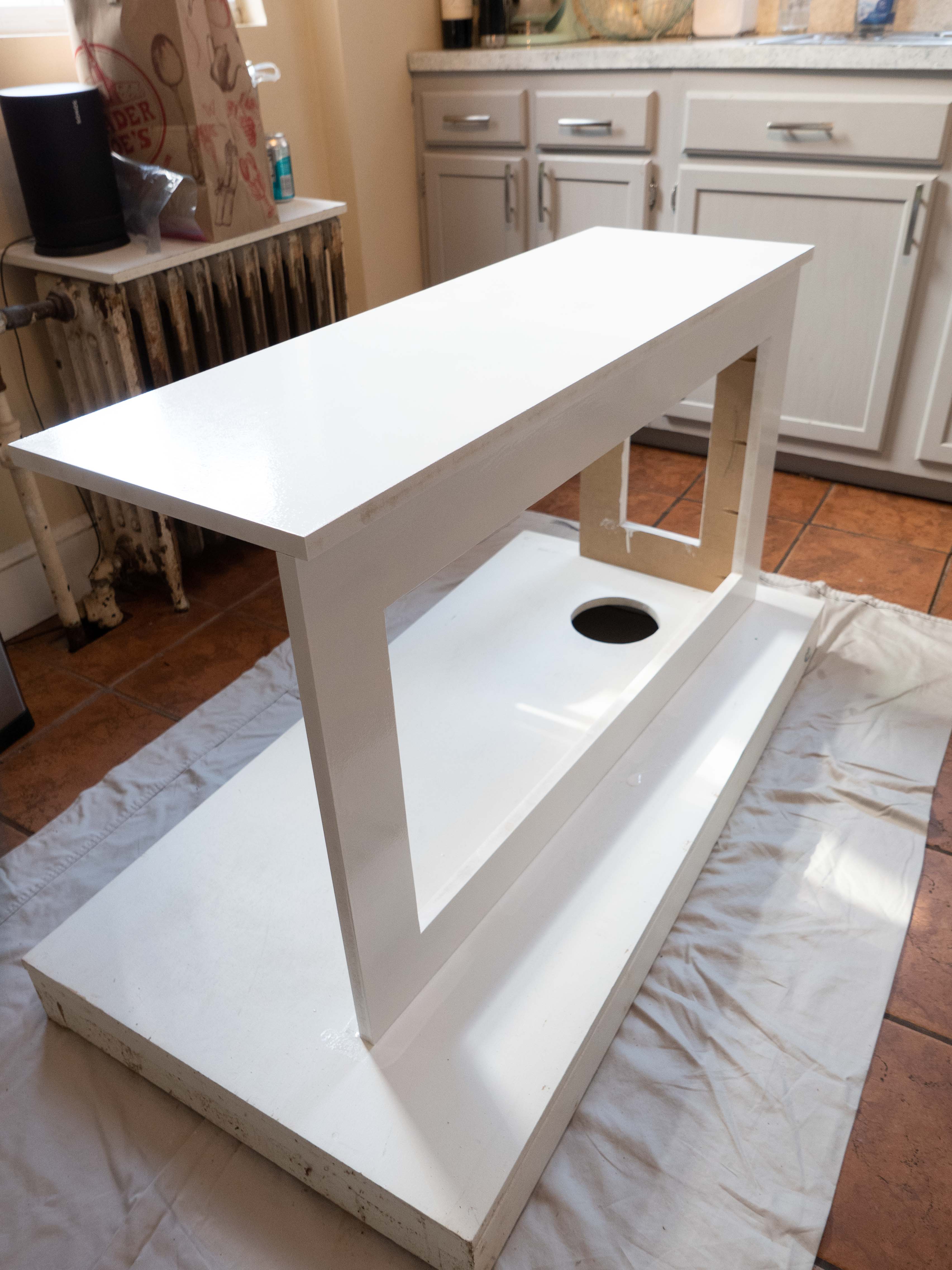 And here it is! It’s not quiitteeee finished. One of the problems with MDF is that the edges of the board are very absorbent unless you seal them first… which we didn’t know. We thought we could just do extra coats of paint, but even after 3 coats on the edges, it STILL absorbed. So we do need to properly seal the edges and then repaint them again before we are really done. But I’d bet we won’t get around to that for a few more years, given how slow we are! :)