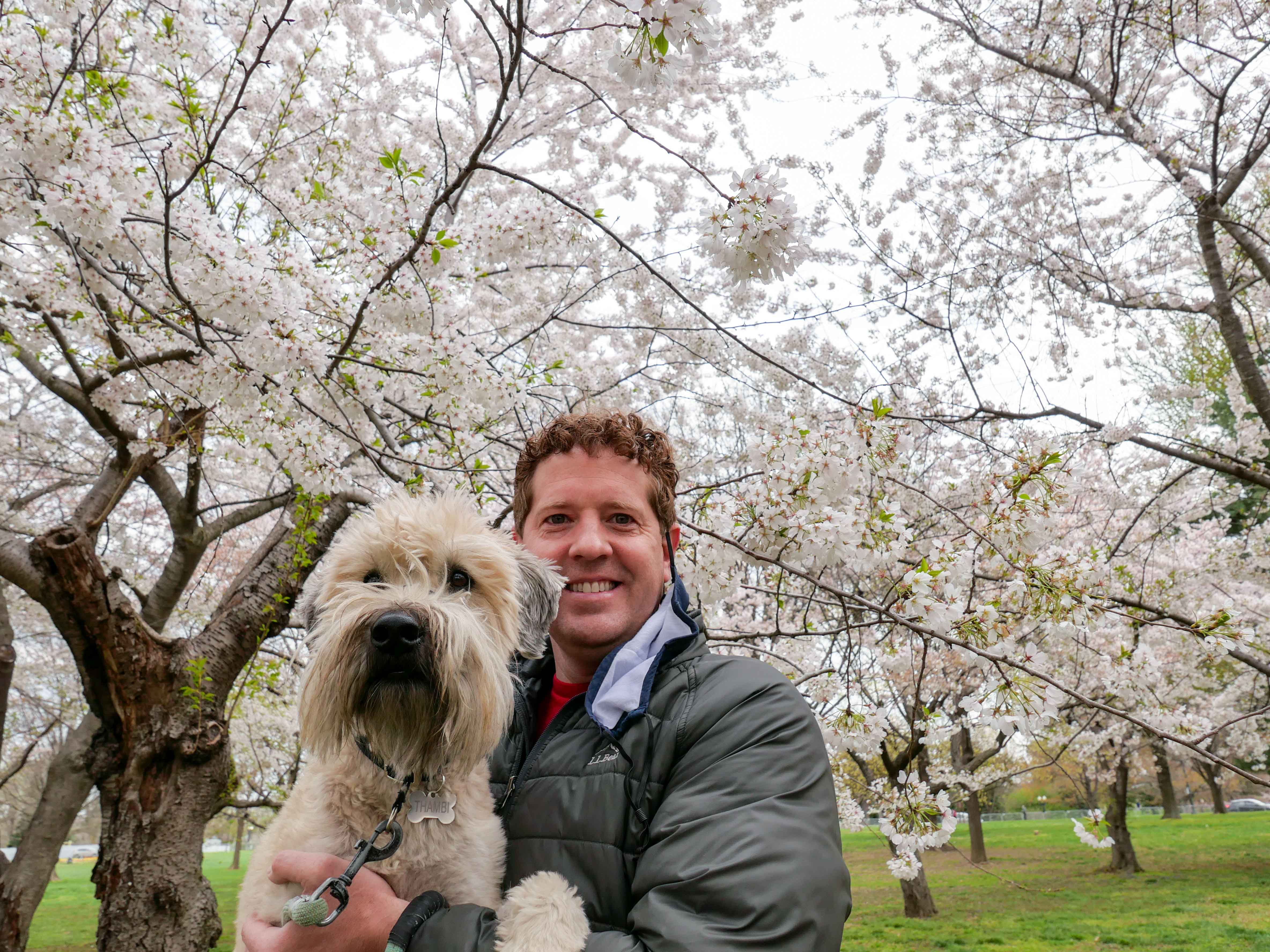 While there are many things that suck about the pandemic, one of the minor benefits is how Washingtonians can enjoy the city’s spoils without too many tourists around. We took advantage of that by going to see the Cherry Blossoms this year, which normally are overrun with tourists and annoying hordes of people posing for Instagram with their selfie sticks. But we had relative quiet this time and even took Thambi. He enjoyed the fragrant blooms!