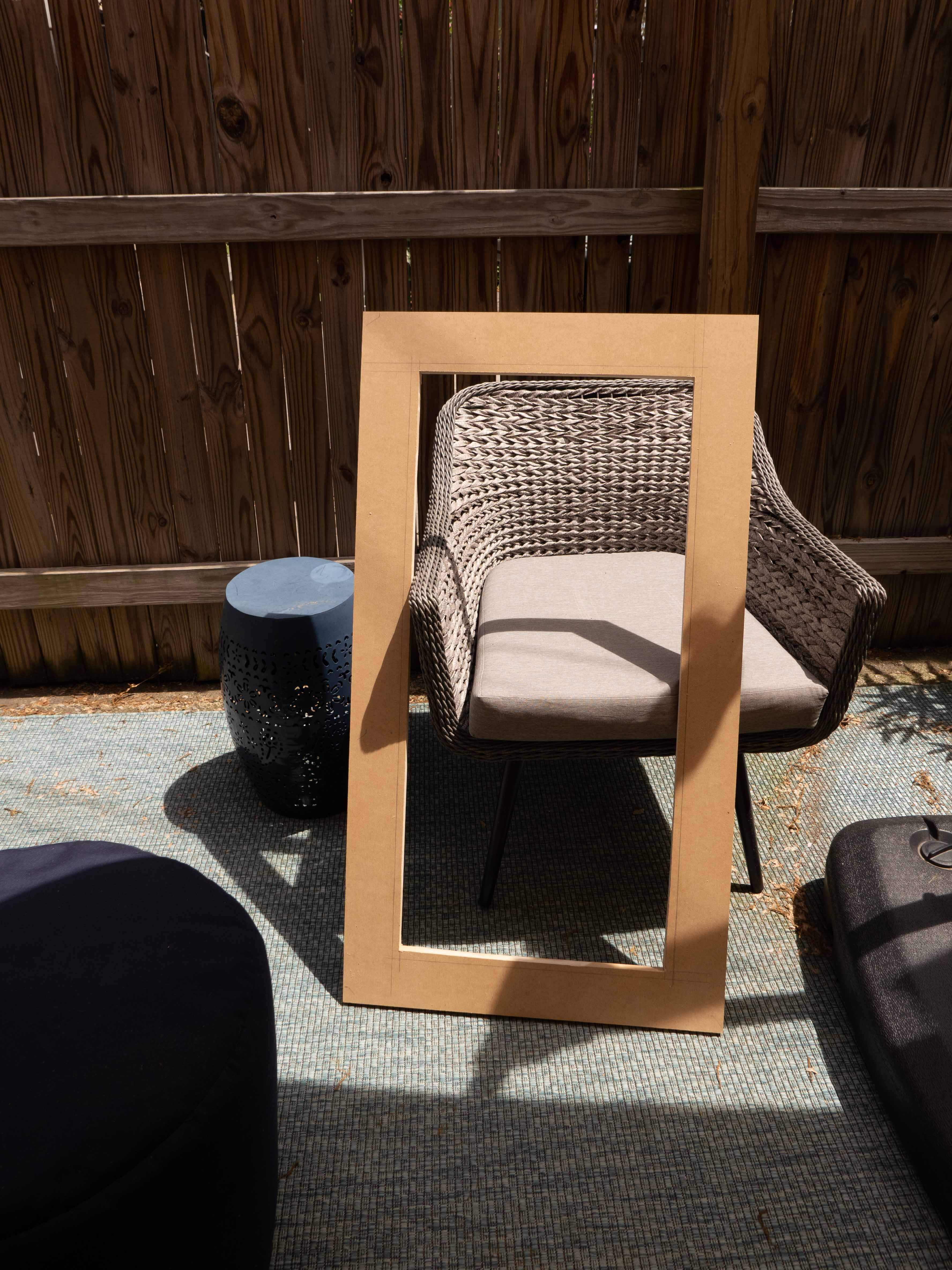 Interestly, the suggestion was to use MDF instead of wood. Mike thinks this is because it enables us to cut a window into a panel of MDF and then wouldn’t have any seams on the front. Here is what it looked like after we cut the window: