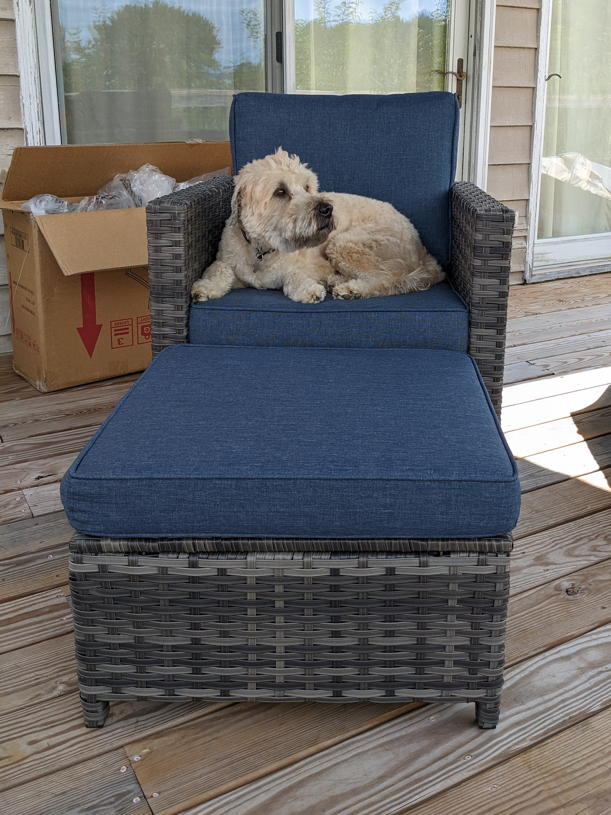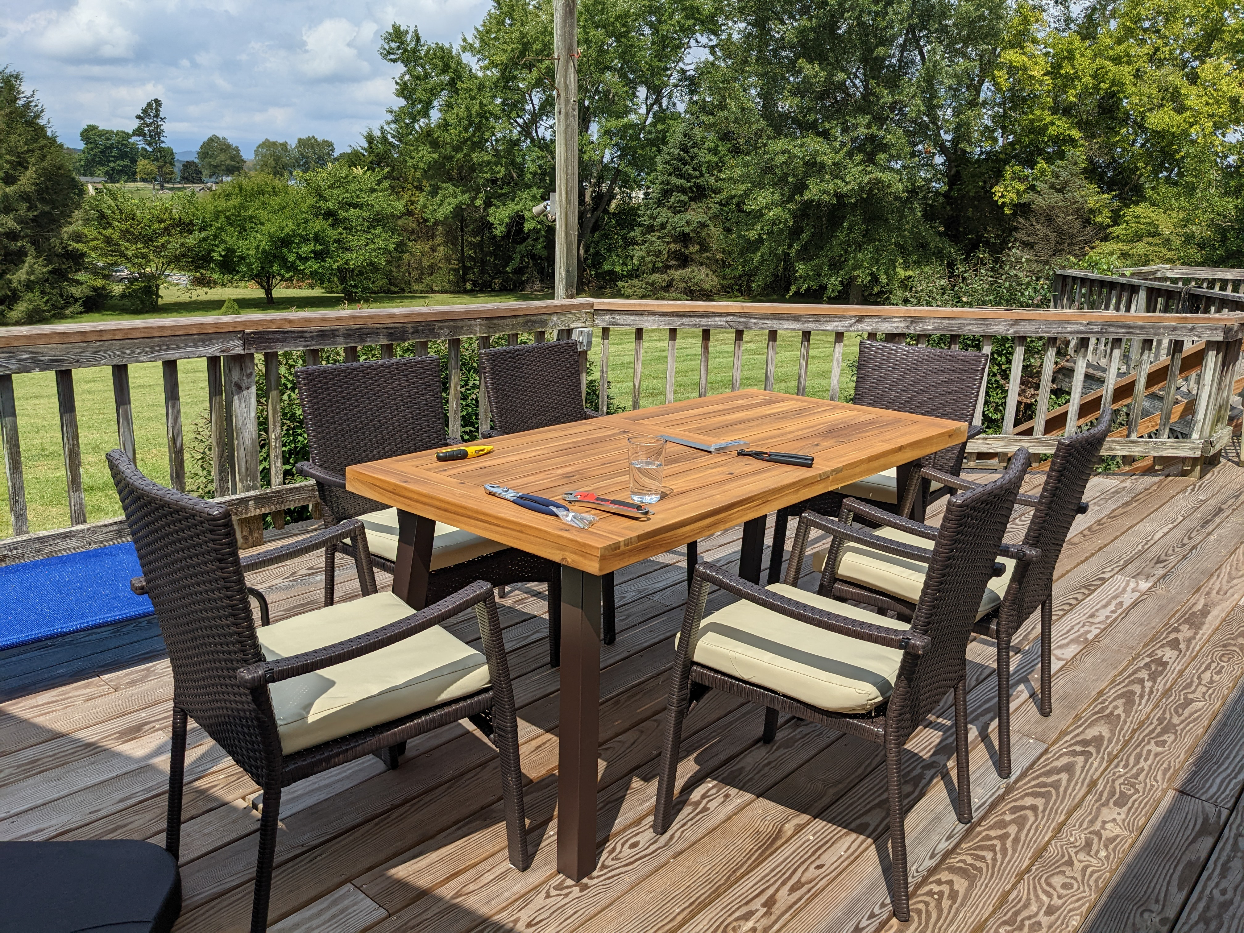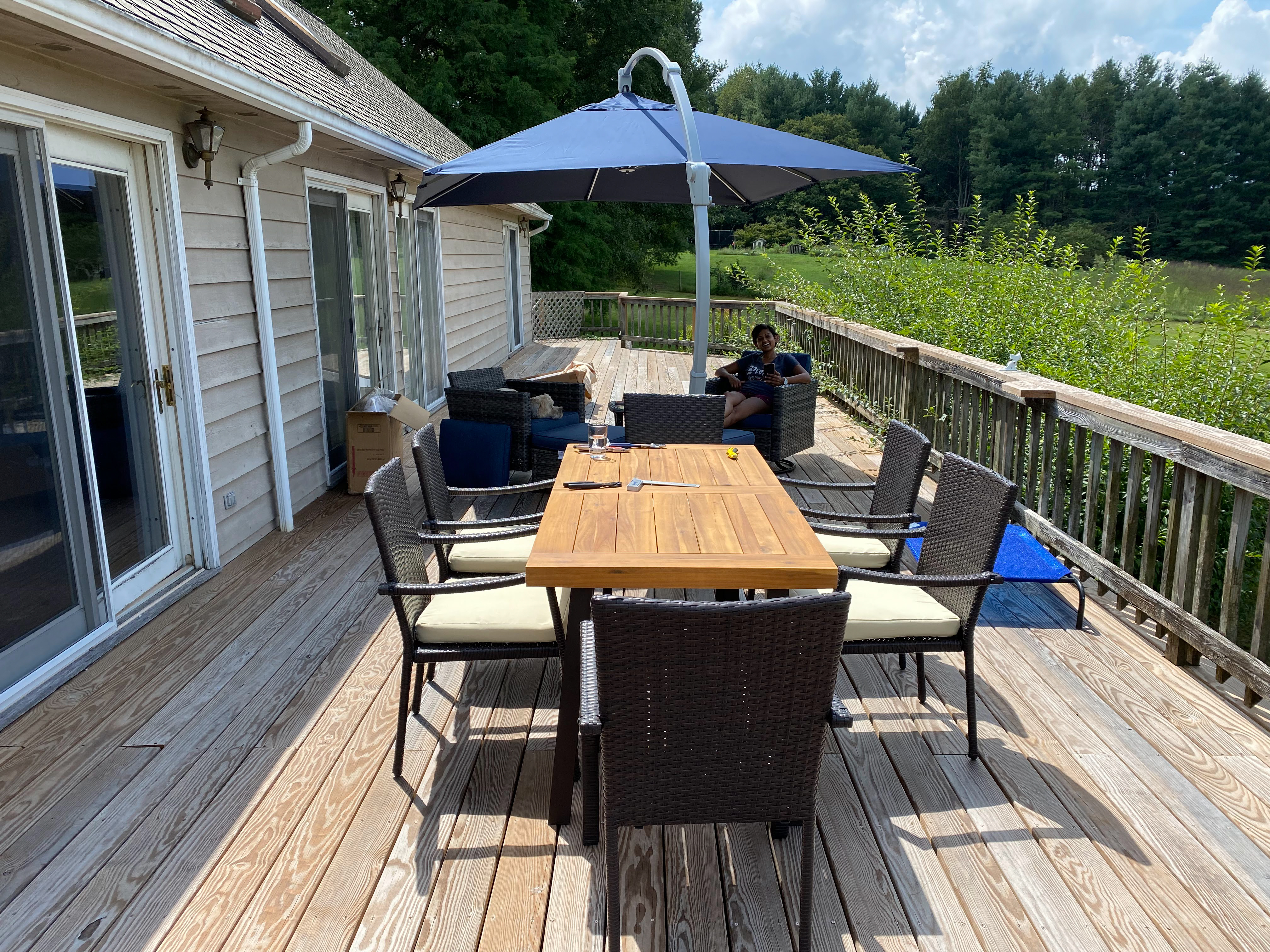 While the inside of the house is a construction zone, we try to make the most of the big deck, particularly in the late Summer. I took advantage of July 4th and Labor Day sales on patio furniture to get some real deals!