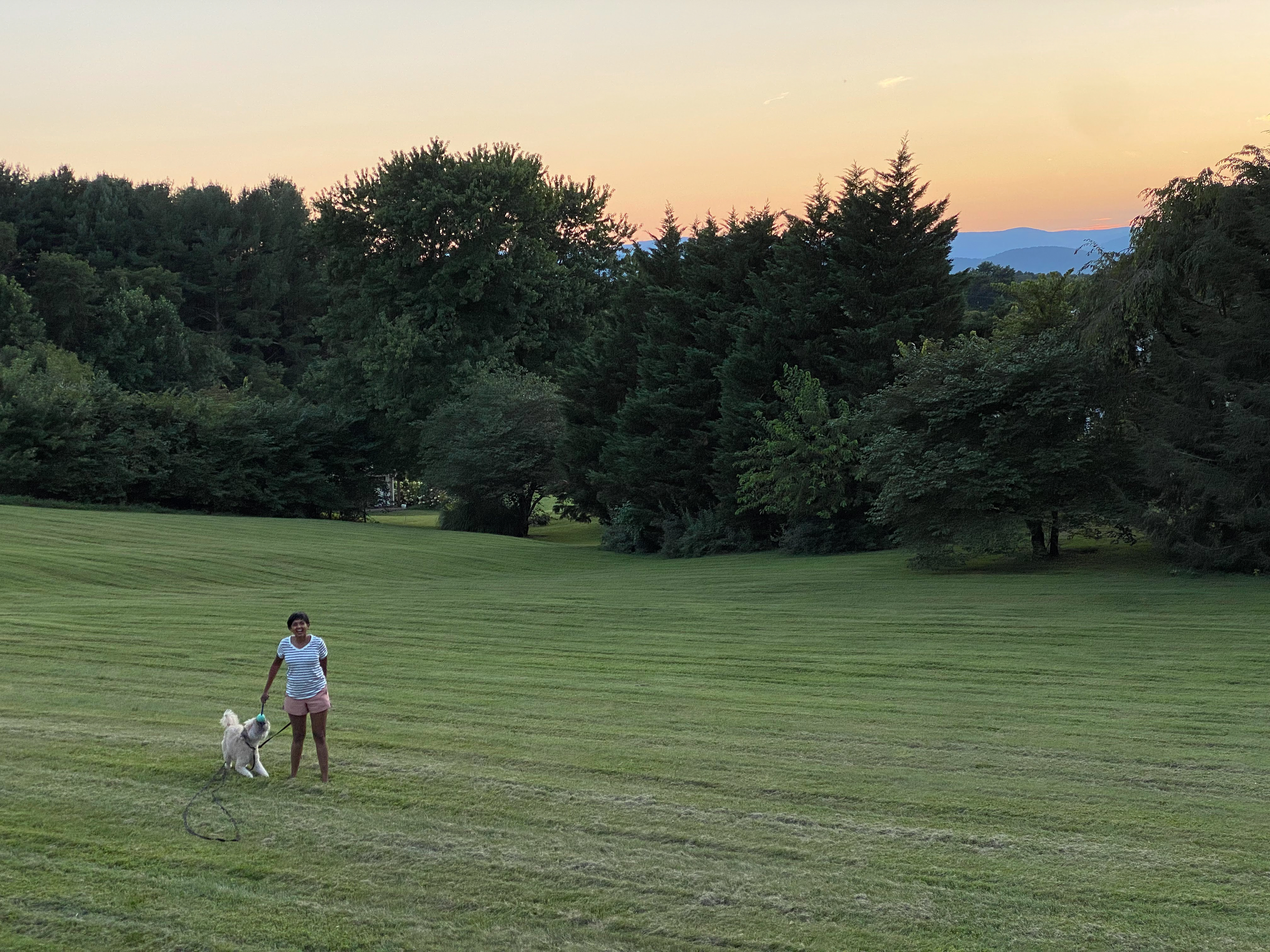 Thambi is slowly getting used to the new digs. On this particular day, he wanted to play tug in the yard while the sun set. I was happy to oblige! You can also really see the Blue in the Blue Ridge Mountains :)