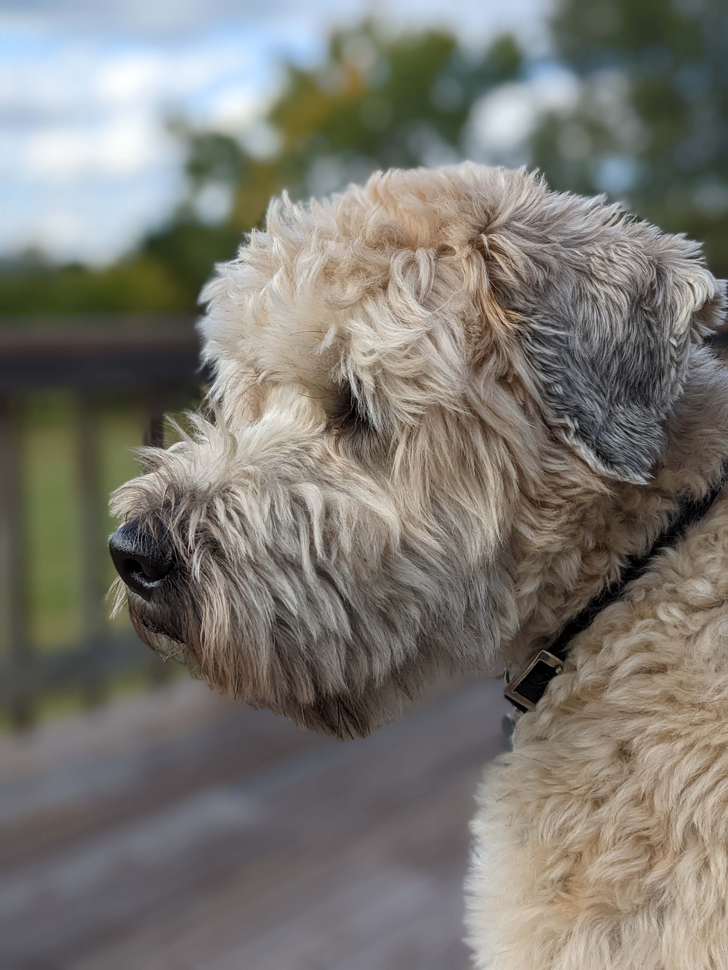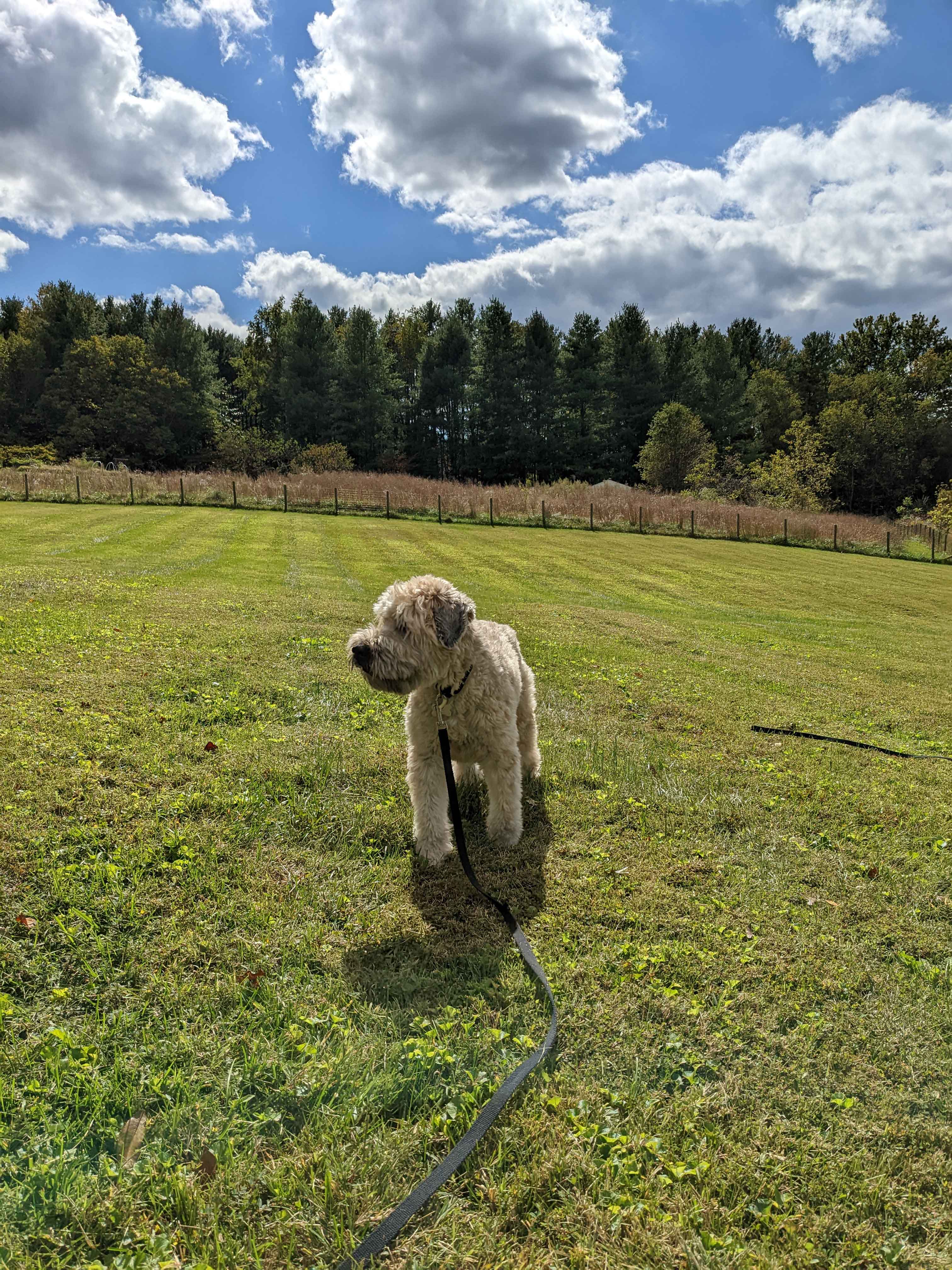 It was a beautiful Fall day so while the paint dried, I took Thambi out to run around the yard. He decided that he just wanted to sniff grass instead but he agreed it was a lovely view. This is facing south at our neighbor’s yard.