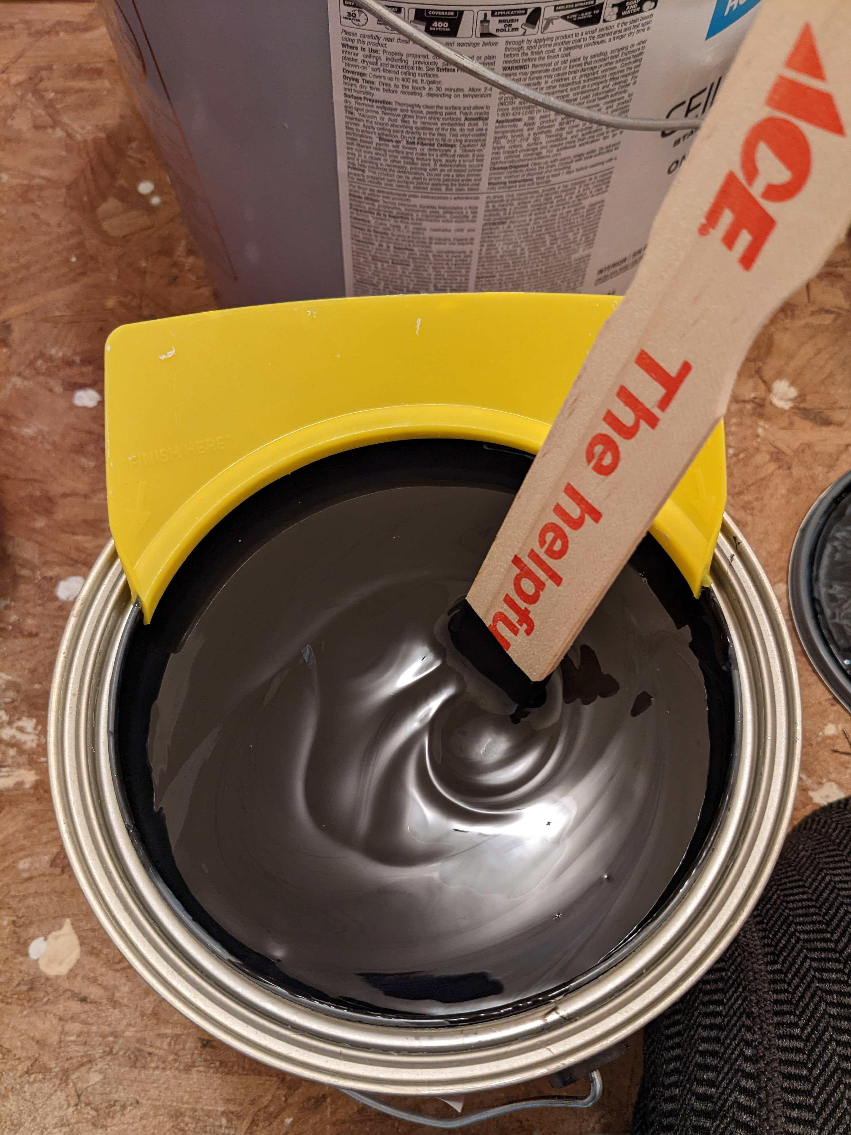 Now for the black paint! It’s a little daunting as I never have painted anything this dark before. This is called Tricorn Black.