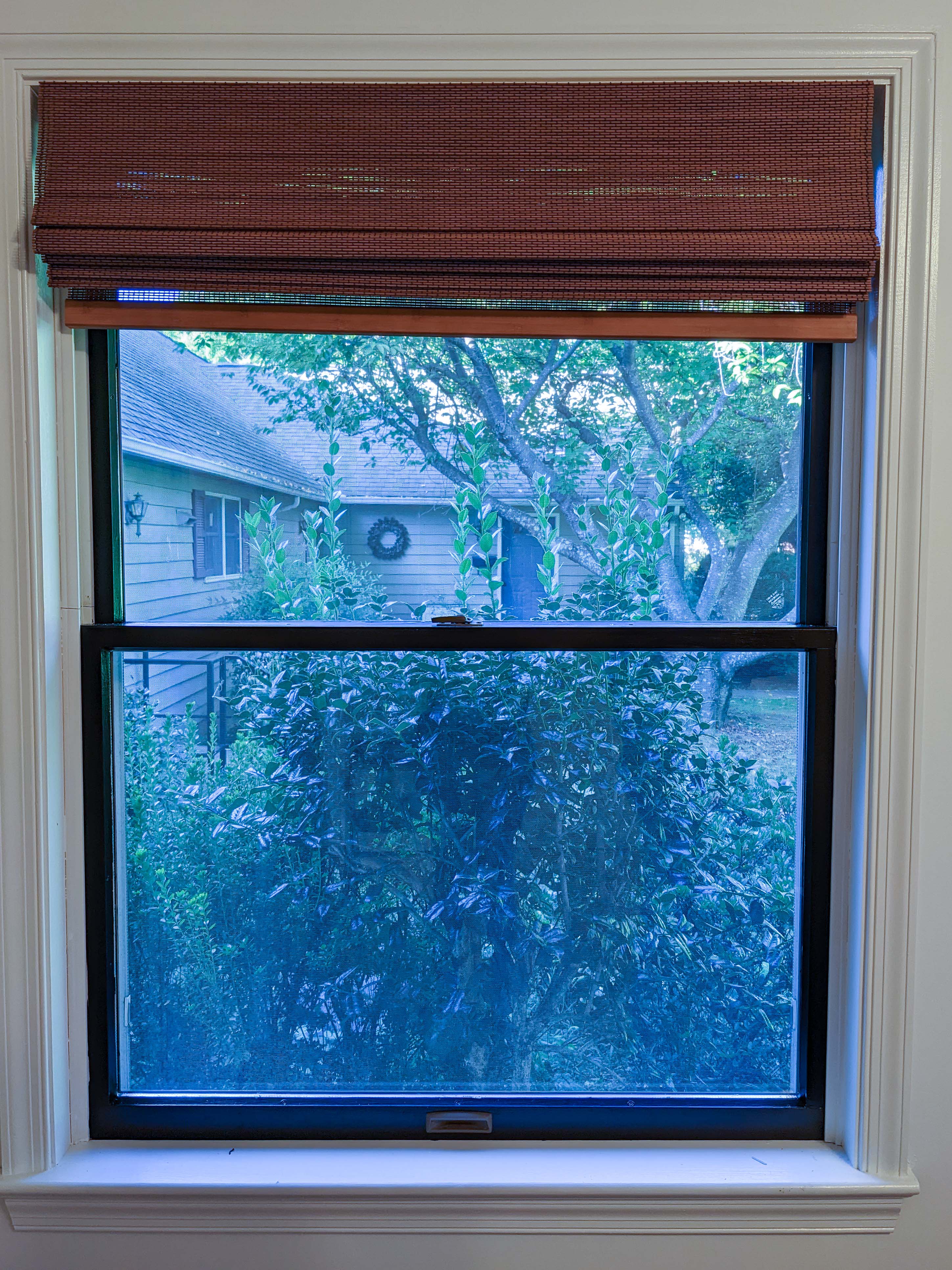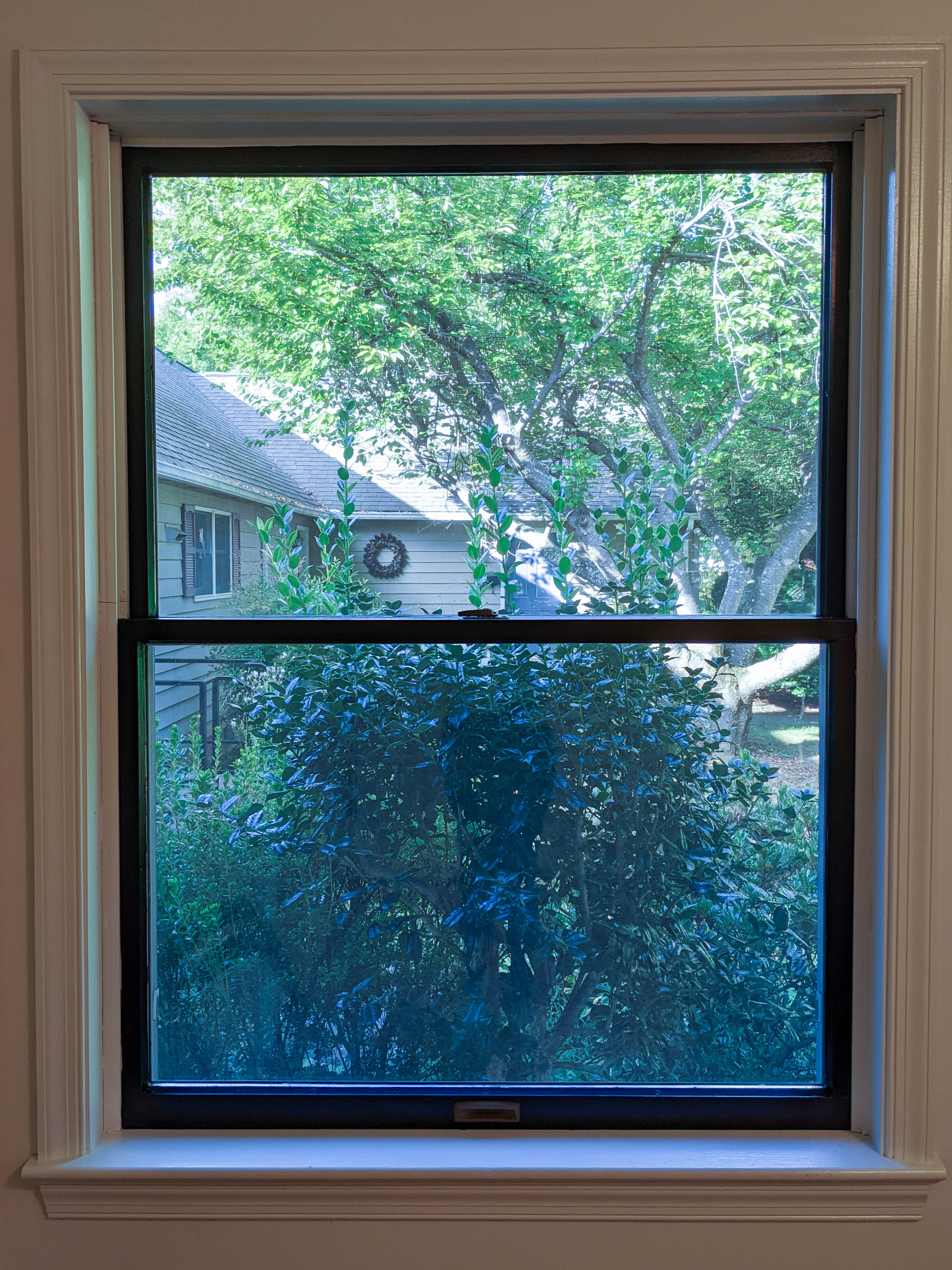 And after more peeling, voila! Lovely black window trim with very clean lines! Note how it adds lovely contrast to the view outside, framing it like a picture.