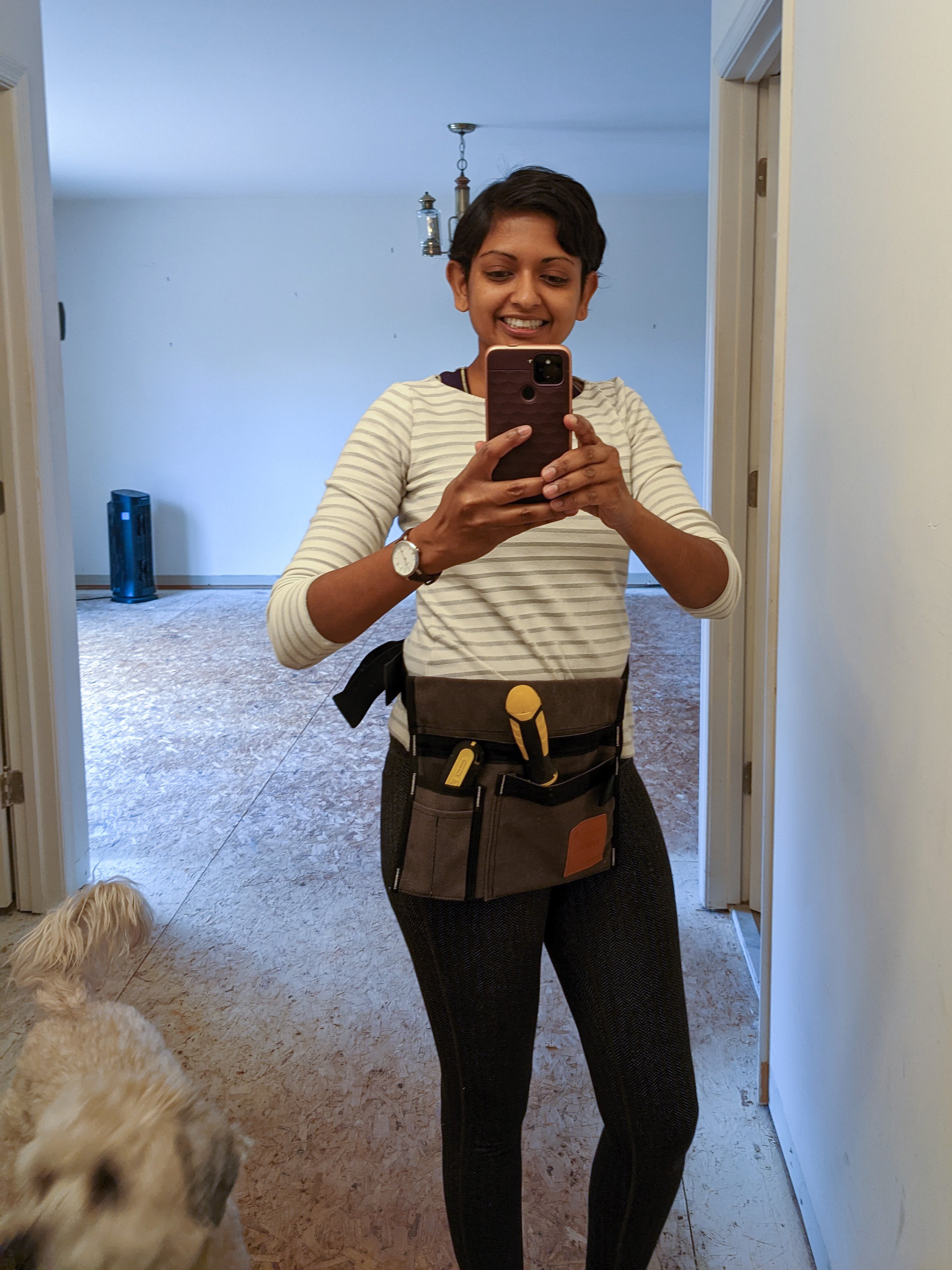 Side note, with all the DIY work in the country house, I decided I needed my own tools and tool belt! Mike initially was supportive but now makes fun of my tool belt! He thinks it is a bit more style than function but I disagree. See how it holds my utility knife???